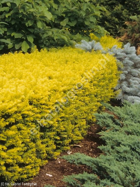 Taxus Cuspidata Aurescens / New growth on taxus cuspidata 'nana aurescens' bursts on the scene like a splash of brilliant goldenrod.
